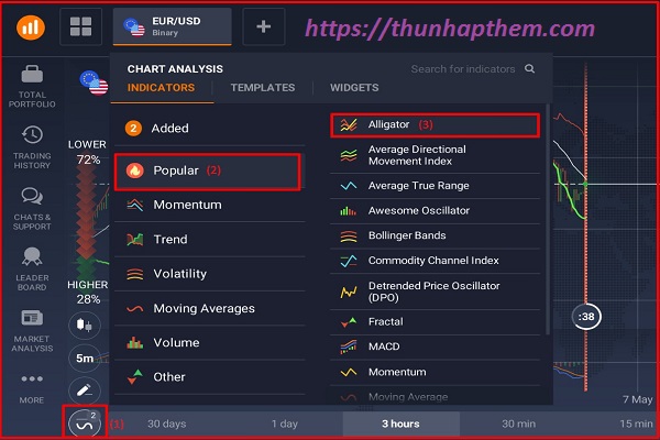 3. Cài đặt chỉ báo Alligator trên IQ Option