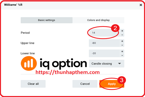 2. Thiết lập chỉ báo Williams %R trên IQ Option
