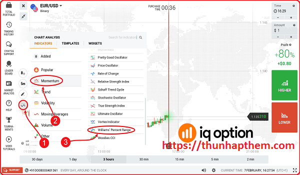 3. Hướng dẫn giao dịch với chỉ báo Williams% R trên IQ Option