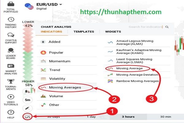 1.Thiết lập SMA4 và SMA30 trên IQ Option